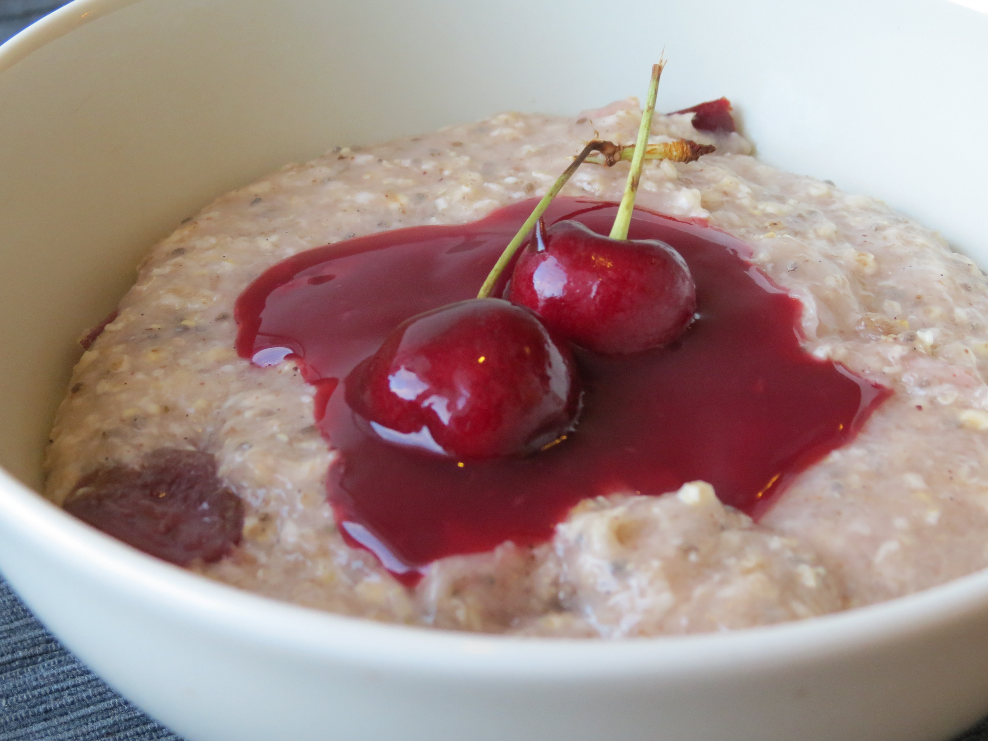 - Bláber eða jarðarber: hita í örra í 15-20 sek, hræra í mauk og hella yfir. Eða hræra frosnum berjum við graut við eldun.
