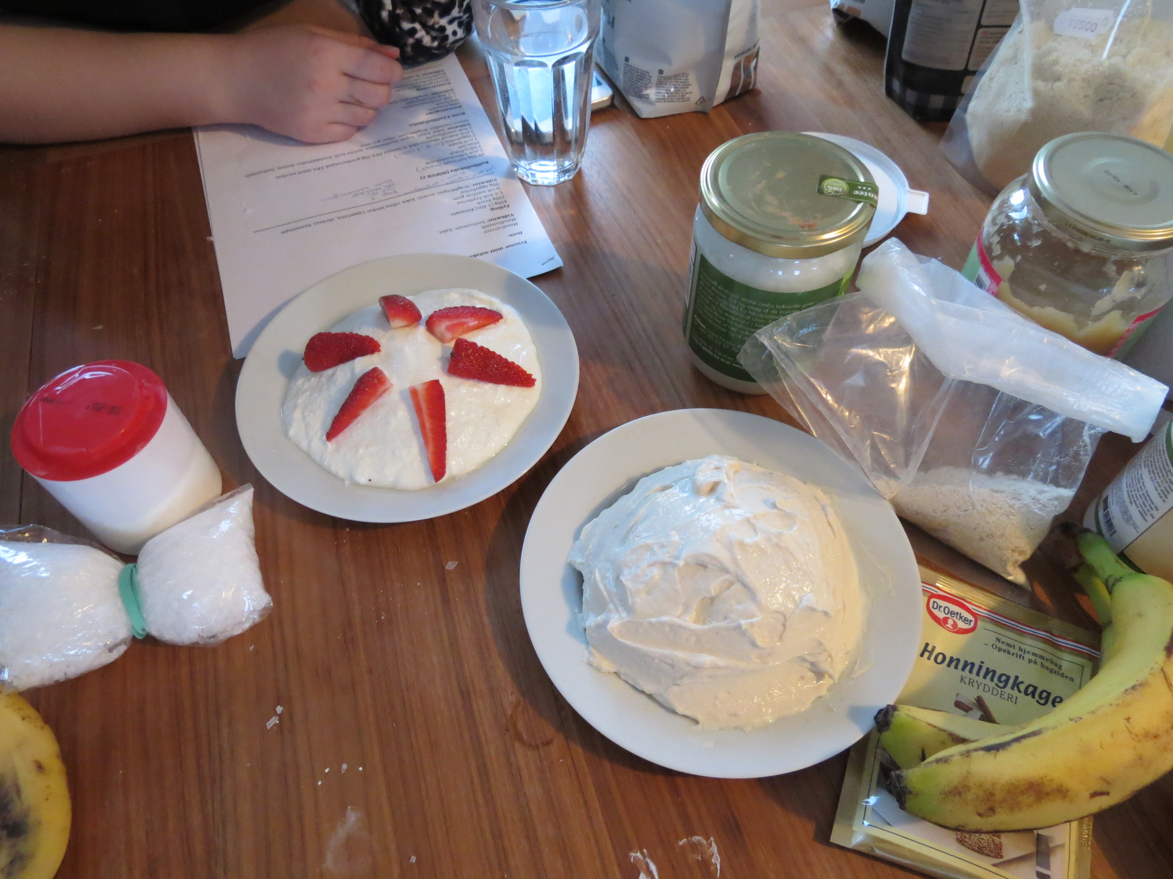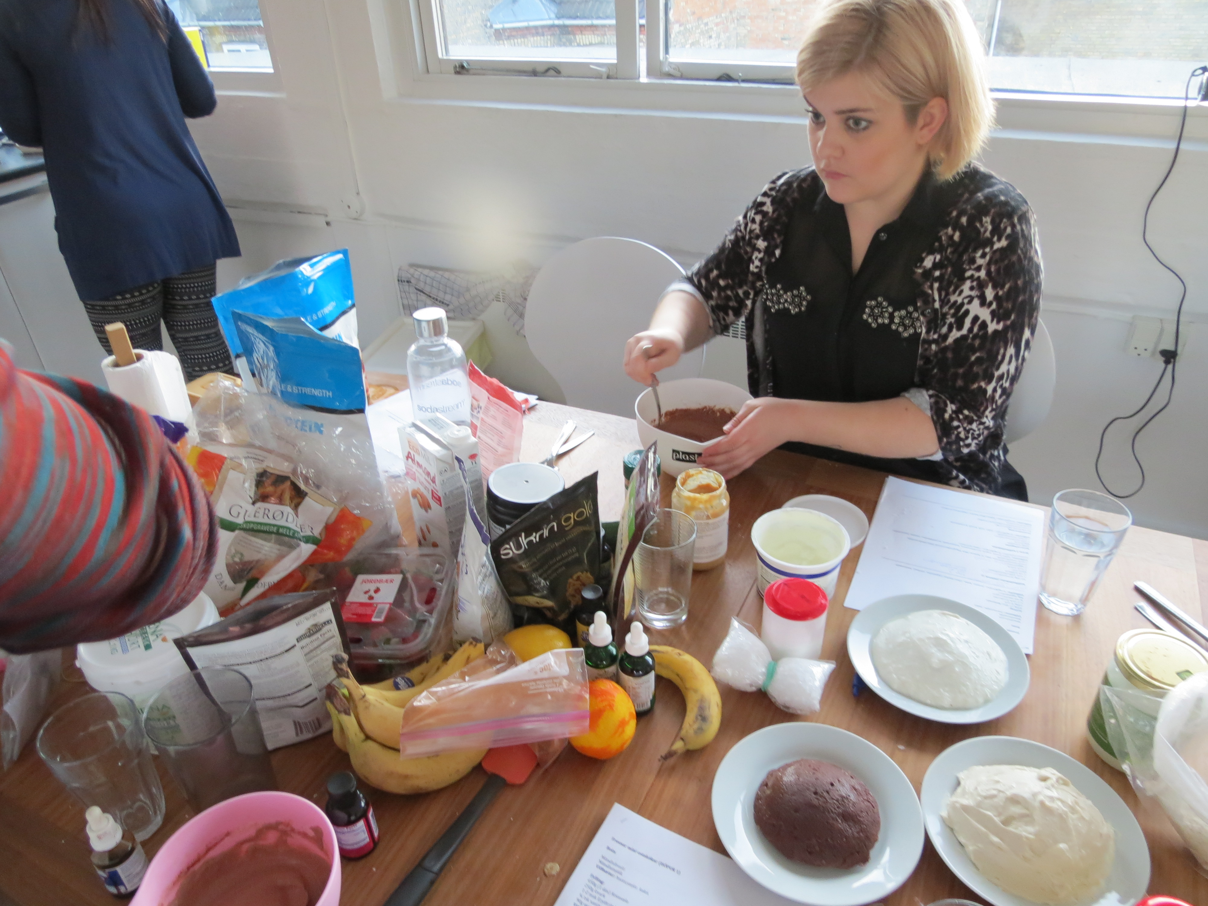 Nóg af hráefni í gúmmulaðisgerðina. NOW möndlumjöl, Psyllium Husk, prótínduft, NOW erythritol, gulrætur, möndlumjólk, ávextir, Hershey’s kakó, haframjöl og ég veit ekki hvað og hvað….