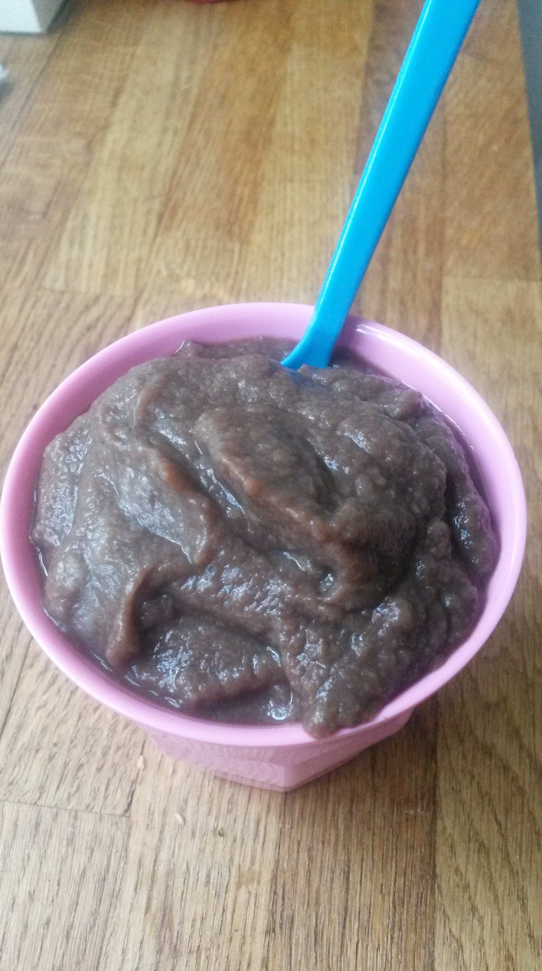 3) henda öllu stöffinu í pottinn og mauka með töfrasprota. Geymt í kæli og langbest ískalt. Það má jafnvel frysta þessa gleði og borða eins og ís.